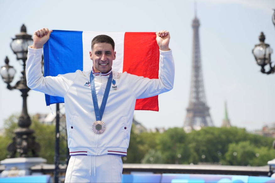 Une foule enthousiaste, venue nombreuse dans ce magnifique écrin parisien. Léo Bergère s’élance à 10H45, du pont Alexandre III alors que sa compatriote va bientôt monter sur la plus haute marche du podium. Lui aussi a bien envie d’y goûter. Chose faite vers 13H00 avec le bronze autour du cou avec forcément beaucoup d’émotions « Je n’arrive pas à réaliser que je suis sur un podium olympique. C’est un rêve après lequel je cours depuis mes débuts en triathlon.