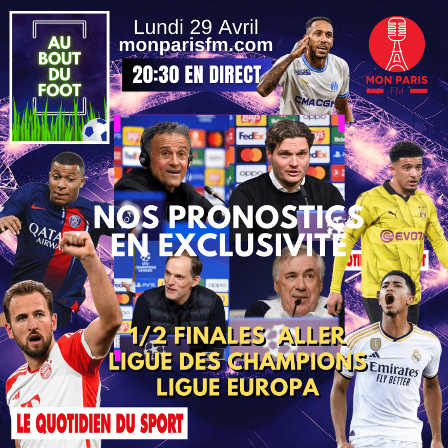 “30 Secondes Chrono” où chaque consultant partage son fait marquant de football.Ensuite, le “Journal du Foot” de Lucas vous rattrape sur les derniersdéveloppements importants que vous pourriez avoir manqués.Nous analysons également les résultats du week-end en Ligue 1 et discutons desconfrontations à venir en demi-finales de la Ligue des Champions, avec le PSGface à Dortmund et le Bayern Munich contre le Real Madrid.Nous examinons les enjeux de ces matchs, les stratégies potentielles, et l’état deforme des équipes.Notre attention se porte aussi sur les demi-finales de la Ligue Europa, opposantl’OM à l’Atalanta et la Roma à Bayer Leverkusen.De plus, nous abordons les options futures pour l’entraîneur de l’Olympique deMarseille, en envisageant les potentiels successeurs de Jean-Louis Gasset pour lasaison à venir.Pour terminer, nous nous interrogeons sur Marquinhos, qui après plus de dix ansau PSG, considère ne pas finir sa carrière ailleurs. Est-il devenu une légende duclub et du championnat français ?ABDF, toute l’essence du foot en 90 mn. Bienvenue !